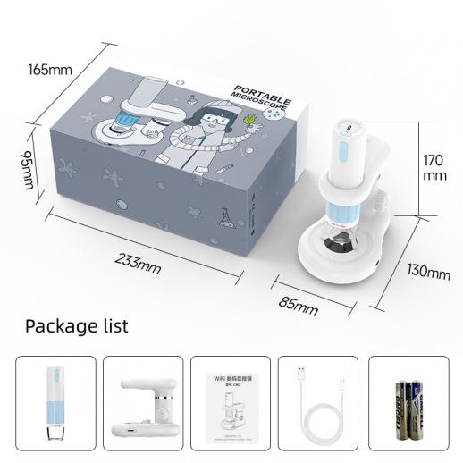 المحمولة واي فاي عالية الدقة المجهر الإلكتروني الرقمي ، 50x-1000x التكبير ، مصدر الضوء LED المزدوج ، دائرة الرقابة الداخلية متوافقة / الروبوت الهاتف الذكي / الكمبيوتر