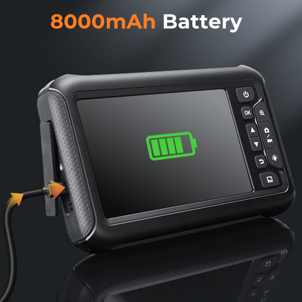 يتميز ببطارية ضخمة تبلغ 8000 مللي أمبير في الساعة توفر ما يصل إلى 5 ساعات من الفحص المستمر، مما يجعله مثاليًا للأعمال أثناء التنقل دون قلق من نفاد البطارية. بالإضافة إلى ذلك، يدعم التشغيل أثناء الشحن عبر كابل Type-C مريح، مما يتيح لك الاستمرار في العمل دون انقطاع.