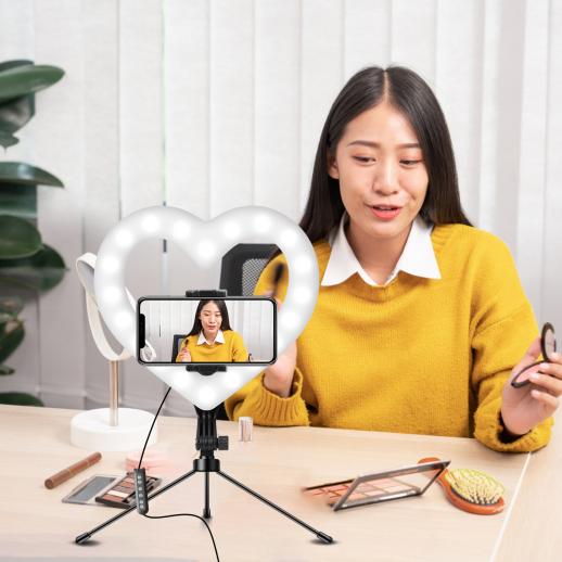 10" RGB Heart Fill Light with Tabletop Tripod with 3 Lighting Effects, 0-100% Stepless Dimming Mode for Live YouTube Tiktok Makeup