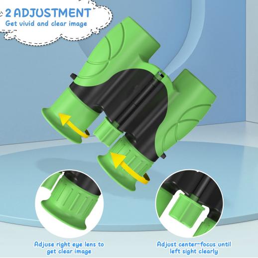 - * مجهزة بحبل قابل للتعديل ، يسهل على الأطفال حملها. يعتبر هذا المنظار هدية مثالية للمغامرين والمستكشفين الصغار الذين تزيد أعمارهم عن 3 سنوات ، وهو مثالي لمشاهدة الطيور والصيد والمشي لمسافات طويلة والسفر والاستمتاع بالبرية ؛