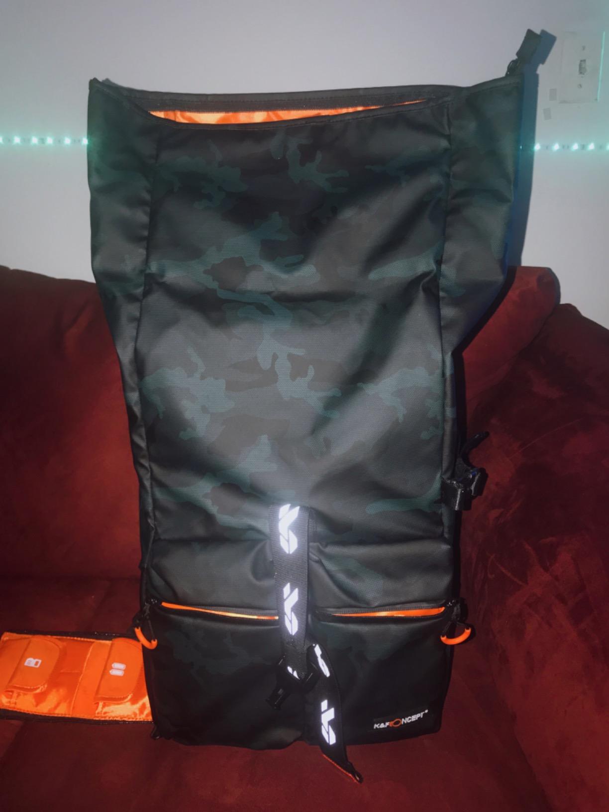 هذه حقيبة ظهر شديدة التحمل حقًا! هيكل سميك وقوي! أحزمة مريحة وأزرار كبس ومشابك قوية! أحب الحلقة التي تتيح لك ربطها بحقيبتك ذات العجلات! اللون البرتقالي اللامع بالداخل هو صفقة جيدة تساعدك في العثور على العناصر، التي تكون عادةً سوداء اللون. جميع حقائب الظهر الأخرى الخاصة بي سوداء من الداخل، وداخل سيارتي أسود. اللون البرتقالي بالداخل هو صفقة كبيرة حقًا!!! يتناسب الكمبيوتر المحمول مقاس 15 بوصة بشكل جيد، أحمل 2-3 أجهزة كمبيوتر محمولة رفيعة وهذه الحقيبة ستناسبها!