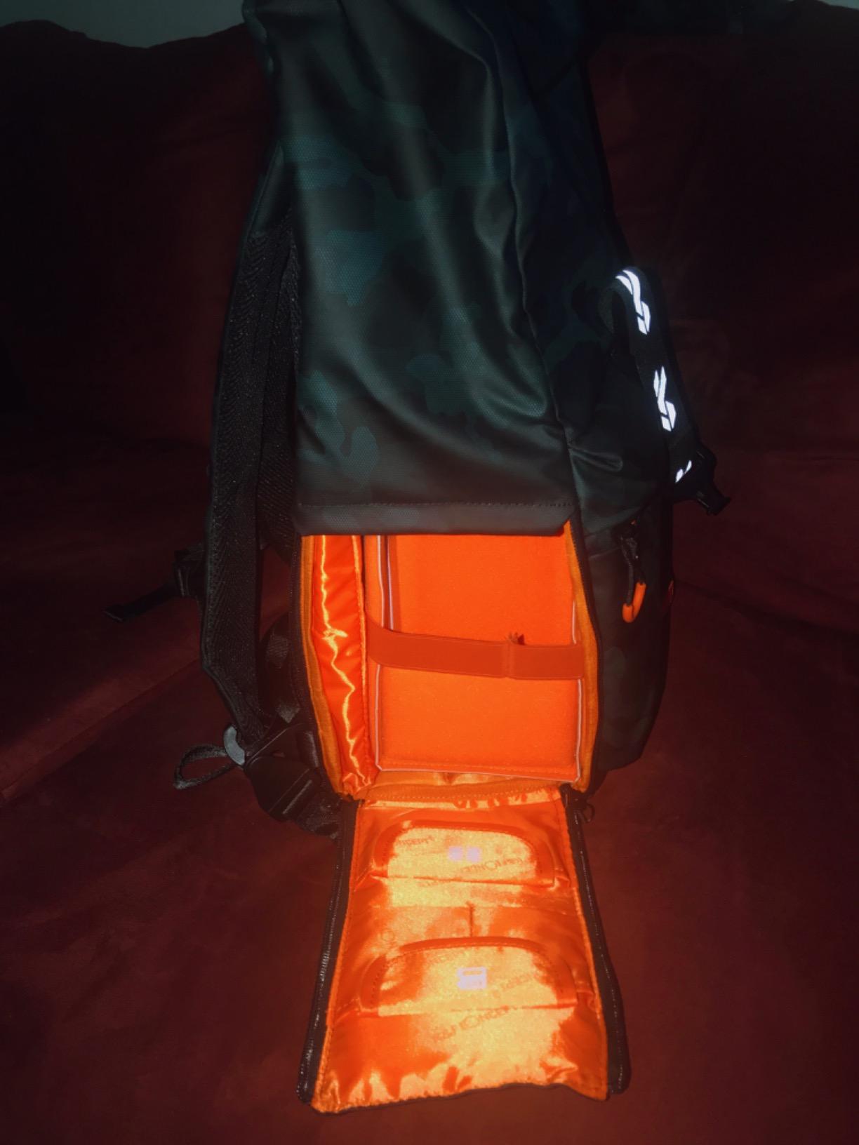 هذه حقيبة ظهر شديدة التحمل حقًا! بنية سميكة وقوية! أحزمة مريحة، وأزرار كبس ومشابك قوية! أحب الحلقة التي تتيح لك ربطها بحقيبتك ذات العجلات! اللون البرتقالي اللامع بالداخل هو صفقة كبيرة تساعدك في العثور على العناصر، التي تكون عادةً سوداء اللون. لقد اشتريت هذه الحقيبة تحسبًا لجلسة تصوير صيد السمك لطالب في المدرسة الثانوية يحب الحياة في الهواء الطلق. كنت أستخدمها لنقل معداتي حول حلبات الهوكي في الطقس السيئ بشكل متكرر. المعدات الموجودة داخل الحقيبة - son a6000، العدسات، البطاريات الإضافية والشاحن، الشاشات المحمولة وما إلى ذلك - محمية جيدًا. حتى مع الإدخال، توجد مساحة للعناصر الأخرى - المحفظة، والمفاتيح، ومشروع الحياكة الصغير، وما إلى ذلك. أكبر ميزة هي التخزين الخارجي - فتحة لزجاجة المياه وطريقة لربط حامل ثلاثي القوائم بالحقيبة موضع تقدير كبير.