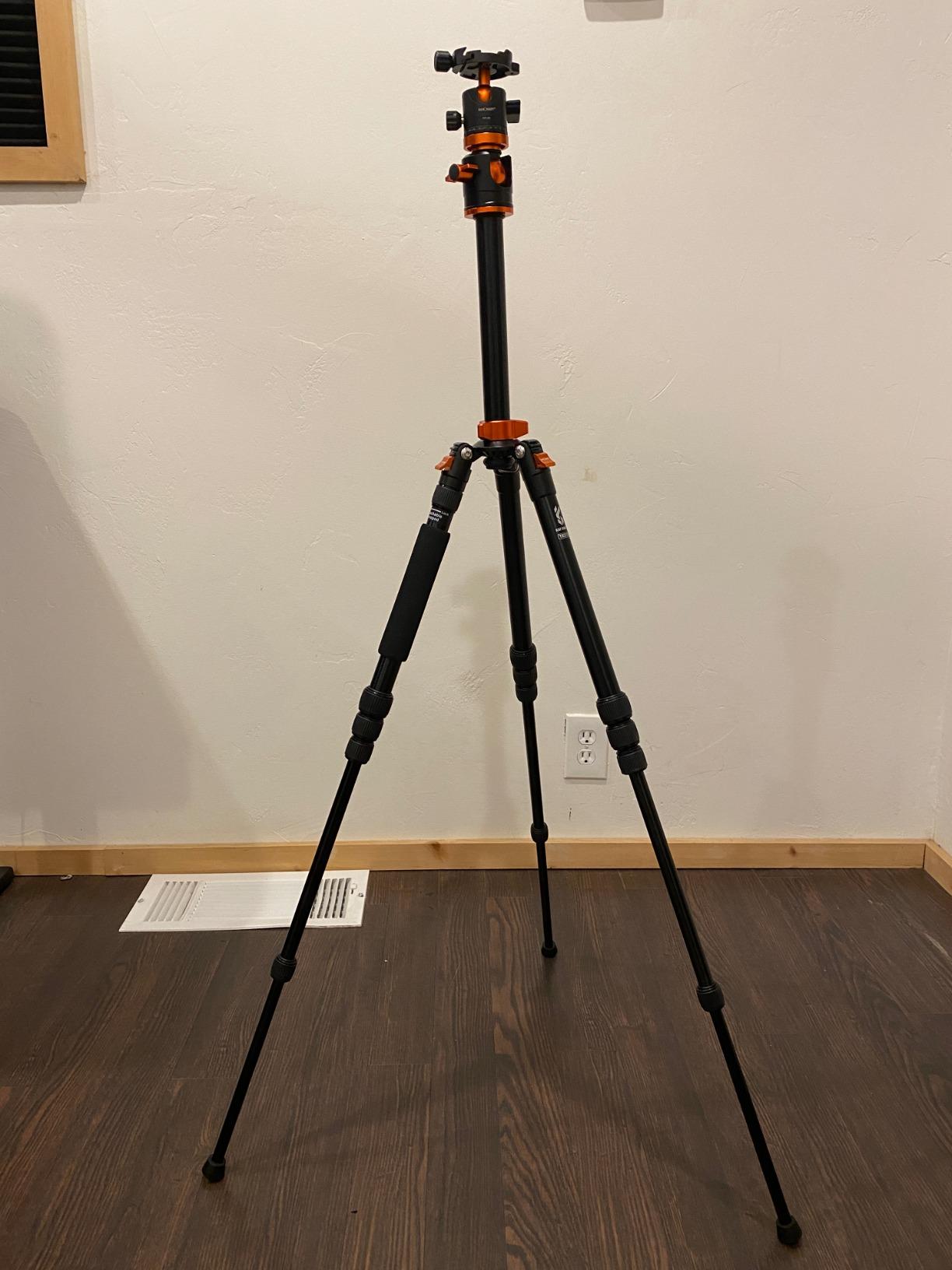 يُعد هذا الحامل ثلاثي القوائم سهل الحمل ويمكن طيه بسهولة. كما أنه خفيف الوزن وسهل التركيب. ولكنه يبدو ضعيفًا بعض الشيء عند استخدام عدسة أكبر. ومع ذلك، فهو يستحق المال بالتأكيد.