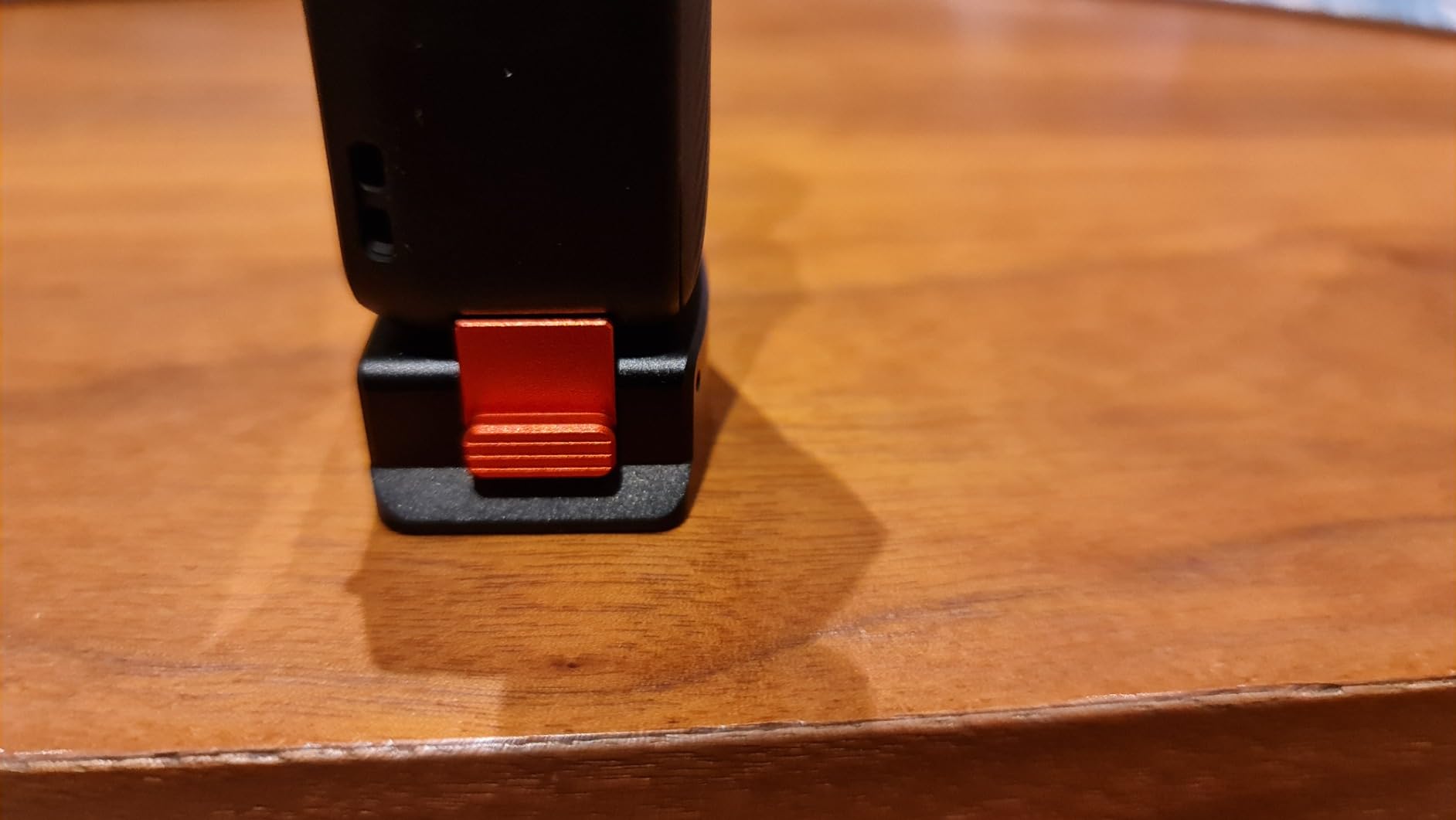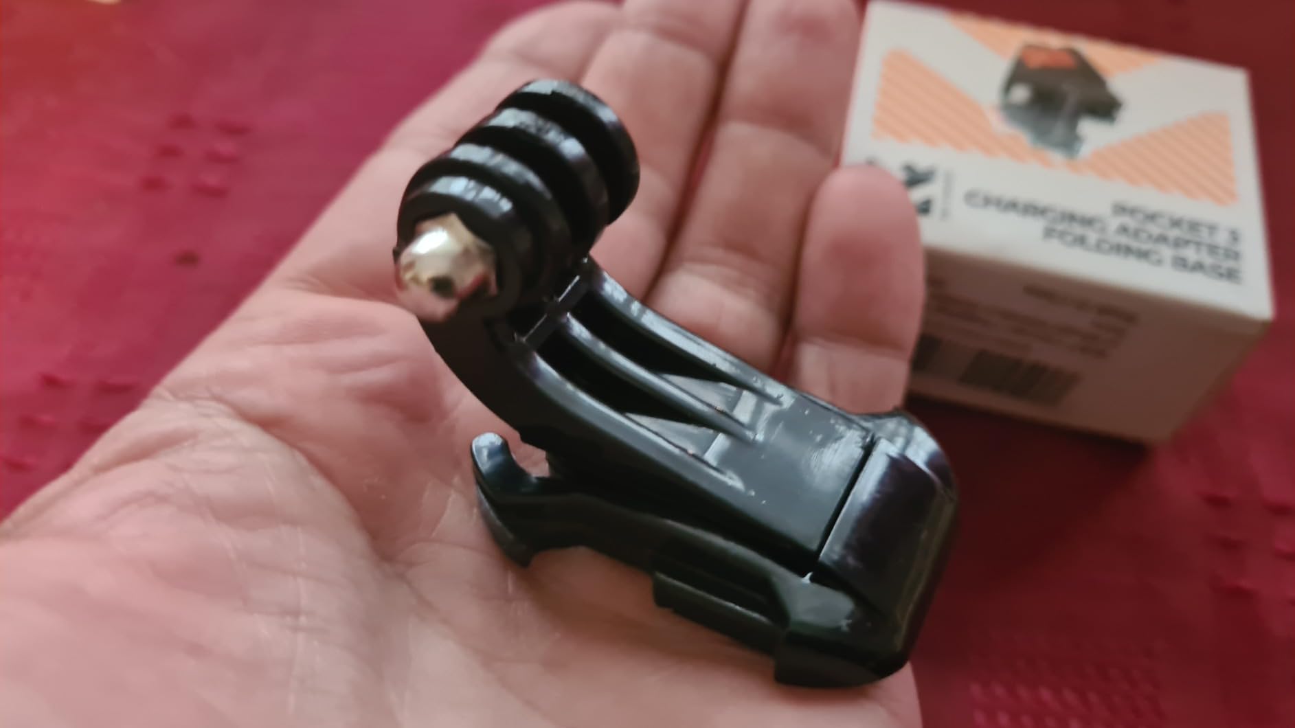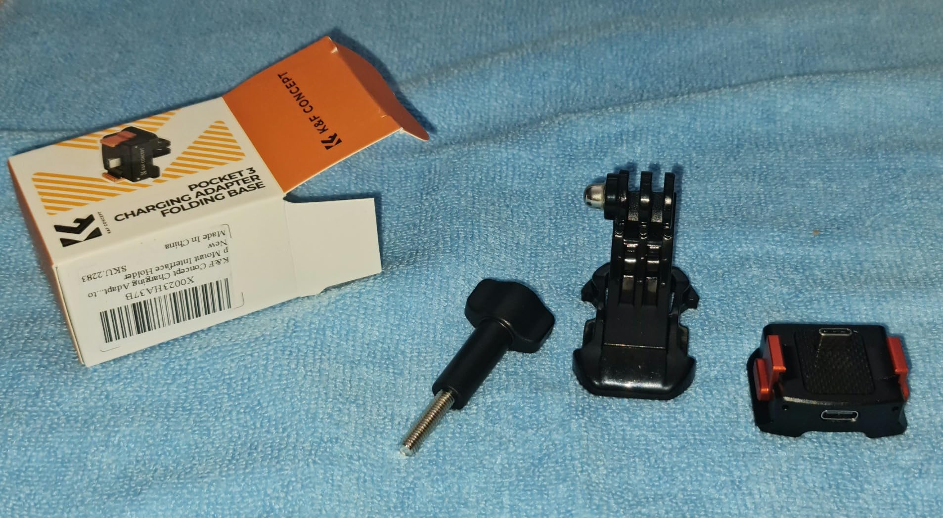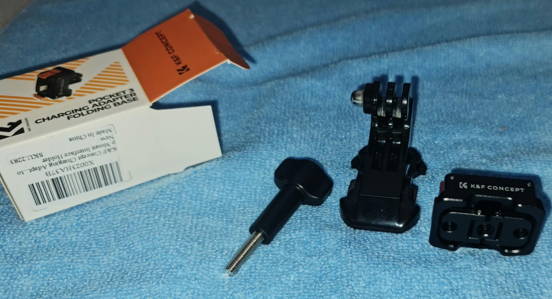 في حين أن جهاز Pocket الخاص بي جاء مع قاعدة إضافية للسماح بالشحن عند تثبيته على حامل ثلاثي القوائم، إلا أنه عبارة عن مكعب بلاستيكي خفيف الوزن للغاية، والذي على الرغم من أنه يطابق المحور ويكون مفيدًا كمقبض تمديد، إلا أنه ليس مستقرًا بشكل خاص إذا تم وضعه في وضع الوقوف. هذه القاعدة من K&F هي مادة أكثر صلابة لأنها مصنوعة بالكامل من المعدن بالإضافة إلى حامل ربع 20 في الأسفل، يوجد أيضًا زوج من الأصابع القابلة للطي مما يسمح لها بالتركيب على أي حامل متوافق مع GoPro تقريبًا. سيكون هذا العنصر مستخدمًا كثيرًا في حقيبة أدواتي.